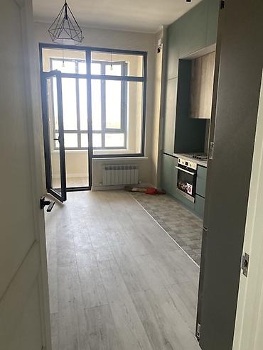- Просторная кухня-гостиная с большим оконным проемом и выходом на остеклённую лоджию. Встроенный кухонный гарнитур и есть холодильник.