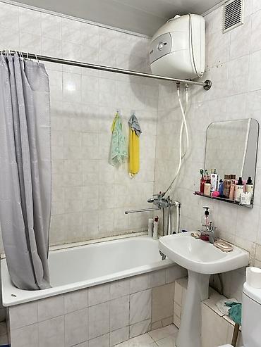 - Санузел облицован плиткой до потолка, установлена ванна с шторкой, стиральная машина автомат, сушилка для белья.
