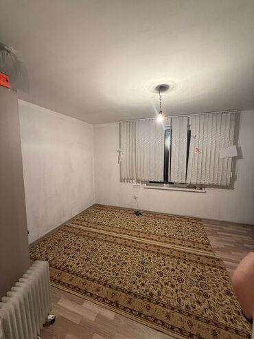- Комната с окном, на полу ламинат и ковровое покрытие.