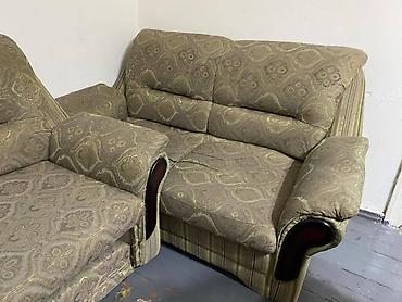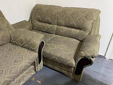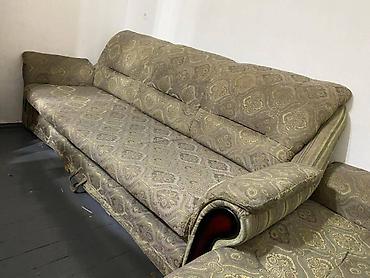 Продается диван с двумя креслами Деревянный каркас Раскладывается в хорошем состоянии Цена 4000 Бишкек самовывоз