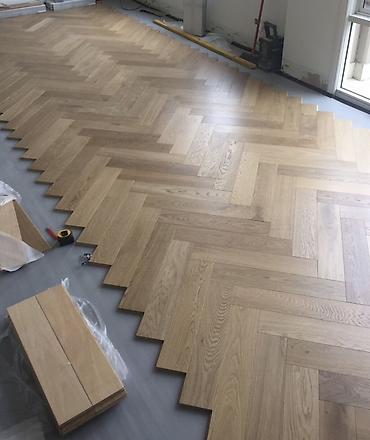 Паркетный пол коричневого оттенка с укладкой «французская елка»