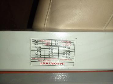 - Таблица рекомендаций по температуре в зависимости от толщины плёнки (100–280 мкм) нанесена на корпус.