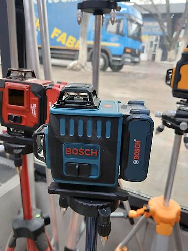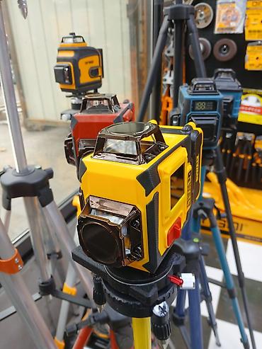 - Лазерные нивелиры 360° (многоплоскостные), различные цвета и конфигурации: горизонтальные и вертикальные плоскости, верхняя призма для построения линий/точек, резьба под штатив.