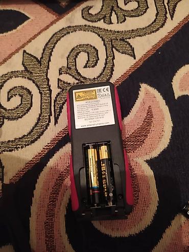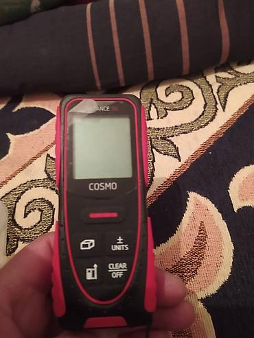 - Функции: измерение расстояния, вычисление площади (иконка с квадратом), объема (иконка с кубом), косвенные расчеты по теореме Пифагора (иконка с треугольником). Кнопка CLEAR/OFF — сброс/выключение.