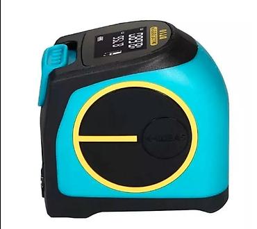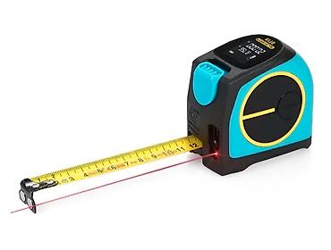 Комбинированный измерительный инструмент 2‑в‑1: лазерный дальномер + рулетка.