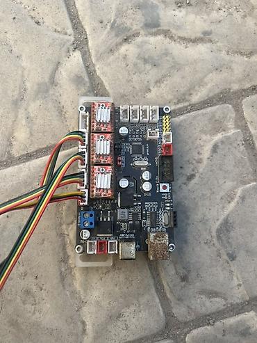 - Контроллер/плата управления с разъемами для шаговых двигателей, концевиков и питания; установлены драйверы шаговых двигателей (с радиаторами). Подключение к ПК по USB.