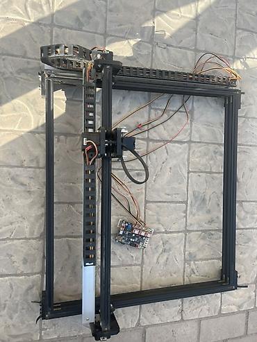 Габариты рамы по внешнему контуру — около формата А3–А2; полезная зона зависит от натяжения ремней и ограничителей по осям. Отлично подходит для самостоятельной сборки/настройки и модернизации: можно установить более мощный диод, добавить датчики, корпус, систему дымоудаления.