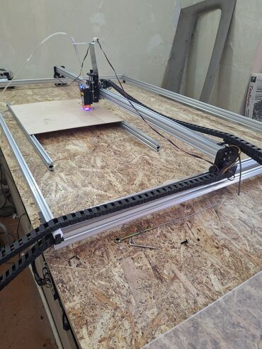 - Кабель‑каналы по двум осям, питание и управление выведены к лазерному модулю.