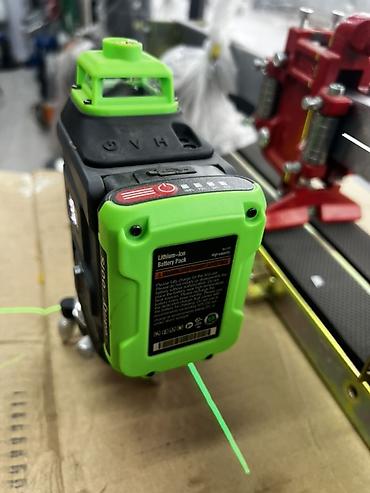 - Зелёный лазер высокой яркости — хорошо виден в помещении и на стройке.
