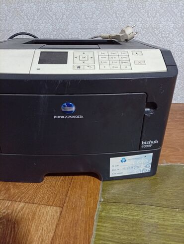 - Konica Minolta bizhub 4000P — монохромный лазерный принтер. Верхний вывод бумаги, панель с экраном и навигационными кнопками.