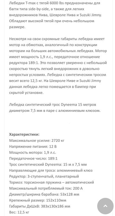 Лебедка электрическая с синтетическим тросом T-Max Atw Pro 6000. Новая, не использовалась, Цена 35000сом. Есть торг
