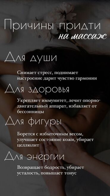 Ощущаете напряжение после рабочего дня? Боли в шее или пояснице? Массаж — лучшее средство для снятия зажимов. 🧘♀️ Что вы получите: ⚡️ Ощущение легкости во всем теле. ⚡️ Прилив энергии и отличное н...