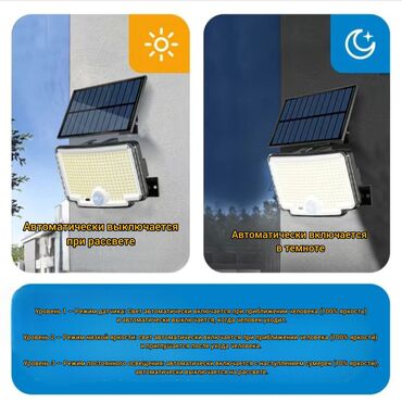 Лампа с солнечной панелью и датчиком движения предназначенный только для временного освещения. Он не подходит в качестве постоянного бытового освещения.Время работы от батареи: Первый и второй уровни — это режим с датчиком, который включает высокую яркость при прохождении человека. Если человек находится рядом с прожектором, свет будет оставаться на высокой яркости, потребляя много энергии и сокращая время работы от батареи до 1-2 часов. Третий уровень — это режим постоянного свечения при слабом освещении с низкой яркостью и максимальным временем работы от батареи до 10 часов.