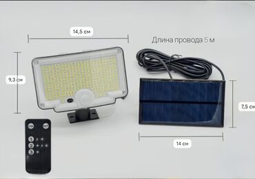 - Длина соединительного провода между панелью и светильником: 5 м — удобно устанавливать панель на солнце, а светильник в нужной точке.