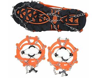 Комплектация: пара накладных ледоступов (левый + правый). Цвет: оранжевый с металлическими цепями.