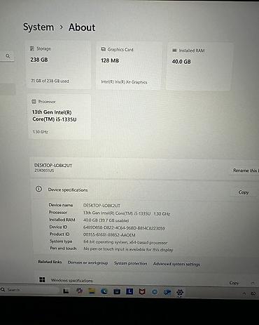 • SSD: 256GB NVMe (238GB)