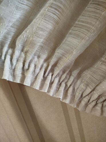 - Крой: нижний край подшит оверлоком, верх собран на резинку/тесьму — удобно нанизывать на карниз-струну или тонкую штангу.