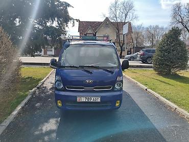 Kia Bongo III — компактный грузовой бортовой автомобиль синего цвета.