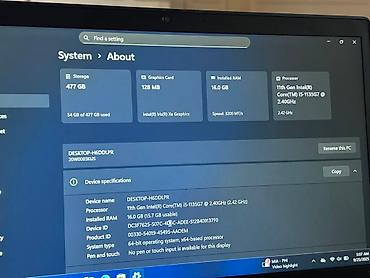 - Intel Core i5 - 1135G7 @ 2.40GHz— современный энергоэффективный процессор для офисных задач, браузинга и мультимедиа.