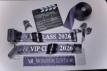 - Атласные ленты “Выпускник/Graduate/VIP CLASS 2026” с персональной надписью: имя, класс, школа, год.
