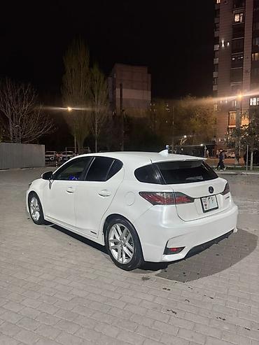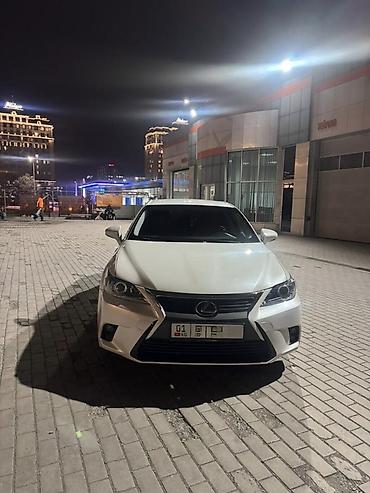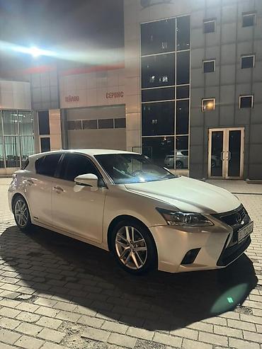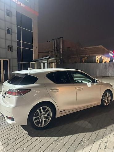 Lexus CT 200h, белый хэтчбек премиум‑класса с гибридной установкой. Компактный городской автомобиль с экономичным расходом и тихой работой, сочетает бензиновый двигатель и электромотор, режимы Eco/Normal/Sport.