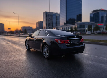 Lexus ES 350, черный седан бизнес‑класса Ключевые особенности: - Бензиновый V6 3.5 л (ES 350) с плавным и мощным разгонным характером - Классический передний привод, автоматическая КПП - Двойные в...