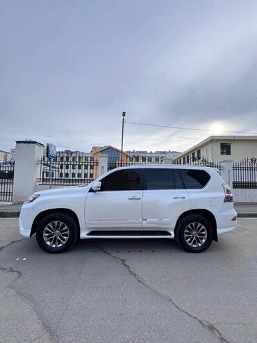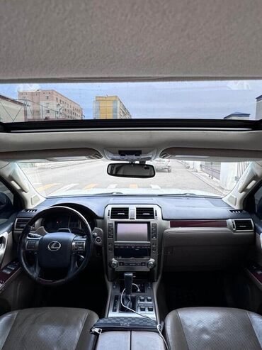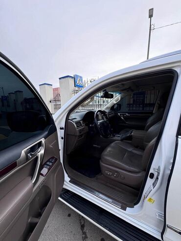 Lexus GX (рестайлинг), белый кузов, интерьер — коричневая кожа с вставками под дерево.