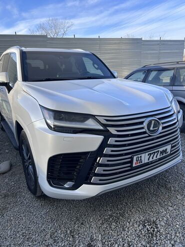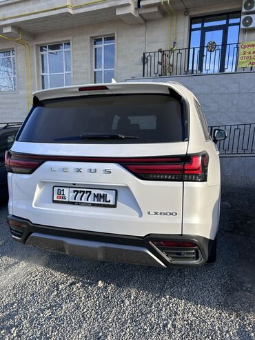 Номер модели на кузове: LX600. Регистрационные знаки: KG 01 777 MML. Цвет — белый перламутр с чёрными элементами экстерьера. Отличный вариант для тех, кому нужен мощный, комфортный и технологичный внедорожник представительского уровня.