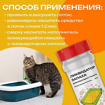 - Подходит для любых типов наполнителей; комкующийся рекомендуется смешивать с ликвидатором.