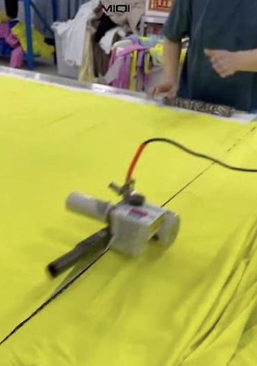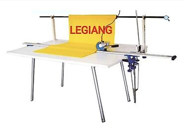 - Электрический дисковый нож на направляющей рейке: ровный чистый рез по нескольким слоям ткани.