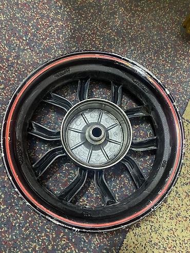 - Особенности: выраженные следы эксплуатации по кромке обода; местами есть заусенцы/сколы лакокрасочного покрытия; внутри обода видны следы износа. Геометрию и совместимость сверяйте с вашим скутером перед установкой.