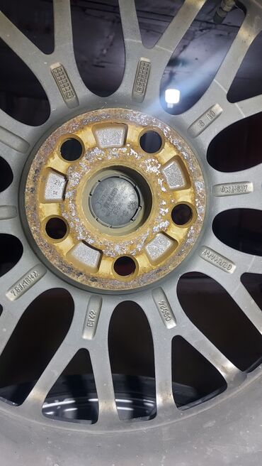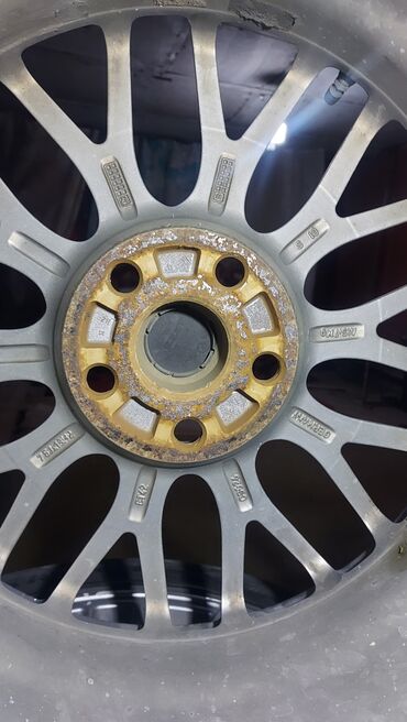 Литой диск с шиной для Mercedes-Benz. Характеристики: - Литой алюминиевый диск с 10-спицевым дизайном, центральная заглушка с логотипом Mercedes-Benz. - Посадочное место: 5 крепежных отверстий. - ...