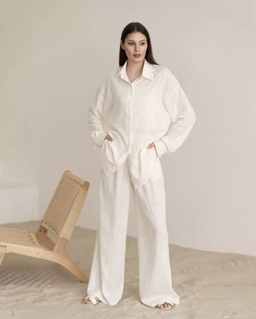 Брючный костюм, Палаццо, Рубашка, Made in KG, Лето