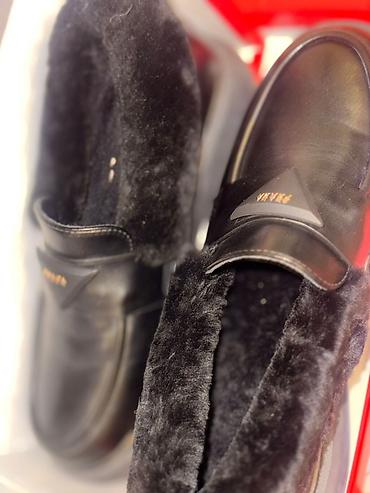 Тёплые кожаные лоферы с меховой отделкой