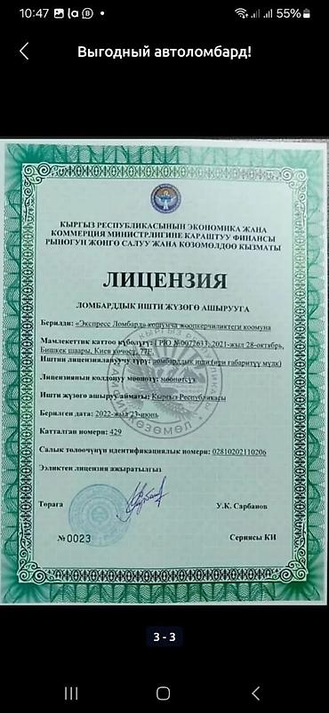 Автоломбард в Бишкеке - Займы под залог автомобиля - Процентная ставка: 2.5% - Низкий процент - Адрес: г. Бишкек, ул. Киевская, 77 - Наличие лицензии на осуществление ломбардной деятельности.