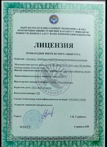 Ломбард предлагает займы под залог автомобилей. Процентная ставка составляет 2,5% в месяц. Оформление займа производится на основании лицензии, выданной Службой регулирования и надзора за финансовы...
