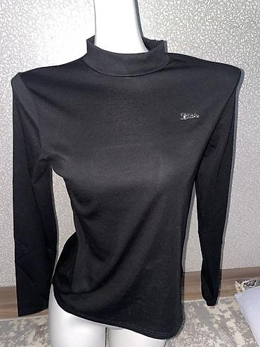 - Черная с небольшим воротником-стойкой: лаконичный крой, длинный рукав, минималистичный декор на груди.