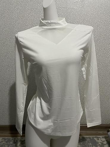 - Белая с воротником-стойкой и полупрозрачной треугольной вставкой на груди.