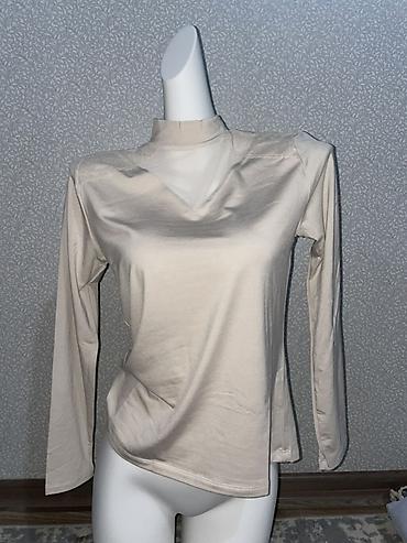 - Бежево‑молочная с воротником-стойкой и полупрозрачной V‑вставкой на груди.