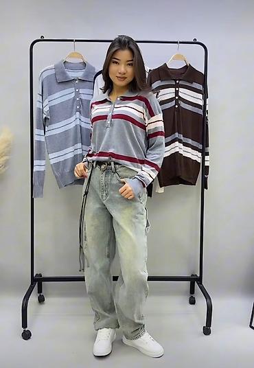 1) Лонгслив-поло в полоску размер стандарт новый без этикет по 350с