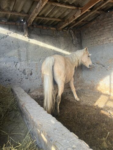 - Масть: паломино, равномерный золотистый окрас, светлая длинная грива и хвост