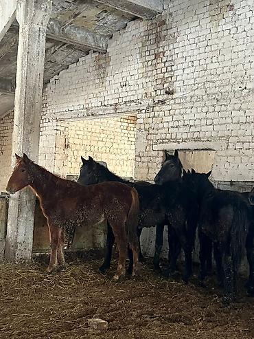 Группа лошадей, подходящих для различных сельскохозяйственных нужд или разведения. Включает особей разных мастей, таких как коричневая и вороная. Лошади имеют естественный вид, характерный для животных, содержащихся в условиях фермы или конюшни. Могут использоваться для верховой езды, работы в упряжи или как часть племенного поголовья.