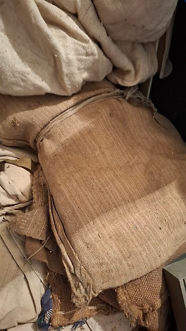 - Плотные б/у тканевые мешки/полотнища из мешковины (джут/лён), несколько штук, разного размера.