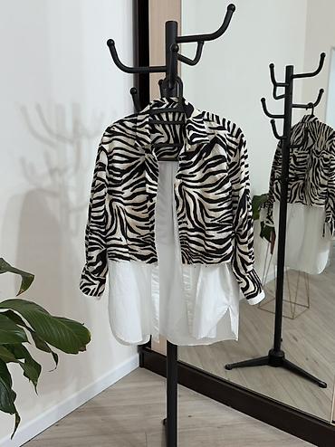 - Верх: короткий жакет/оверлей с принтом зебры, отложной воротник, длинные рукава