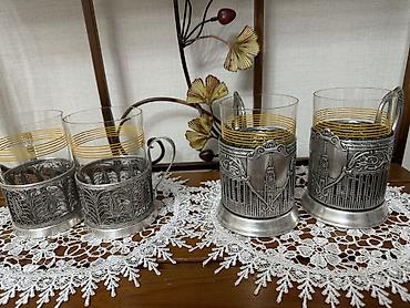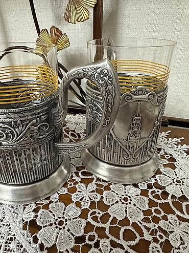 Любителям чайной церемонии! Мельхиоровые подстаканники (“Спасская башня” Кольчугино, скань) со стаканами.