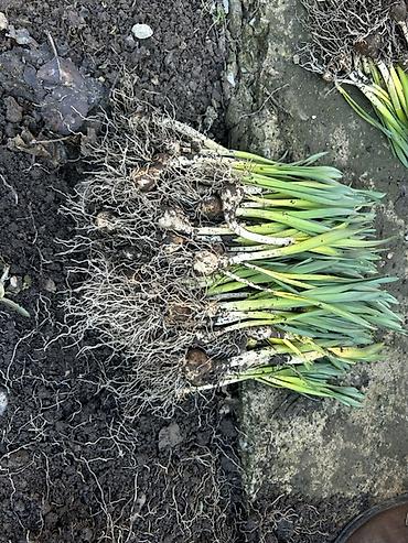 - Посадочный материал: выкопанные куртины с хорошо развитыми луковицами и мощной корневой системой; на фото — реальные делёнки с землёй после выкапывания.