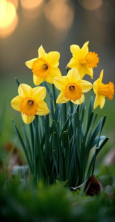 - Сорт: классические жёлтые трубчатые нарциссы (весеннее цветение).