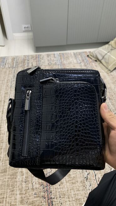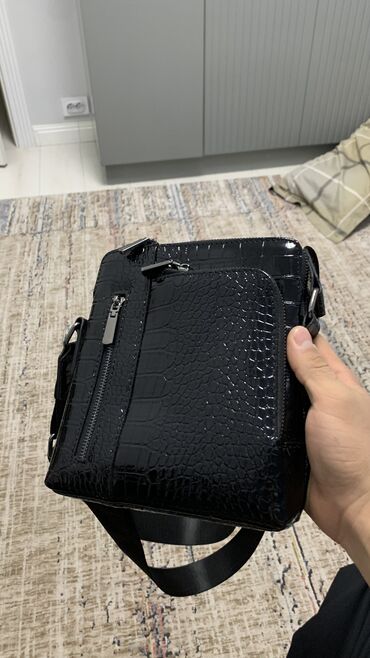 Мужская кожаная барсетка/клатч, цвет черный. Характеристики: - Материал: натуральная фактурная кожа - Компоновка: основное отделение на молнии + внешний горизонтальный карман на молнии - Внутри: в...