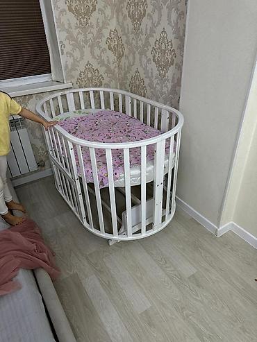- Тип: овальная/круглая трансформируемая кроватка-манеж