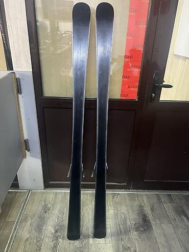 Горные лыжи K2 с креплениями Tyrolia - Тип: карвинговые горные лыжи - Бренд/серия: K2 (графика с логотипом K2 по канту) - Длина: ориентировочно 180–190 см (по фото — высокий рост) - Геометрия: кла...